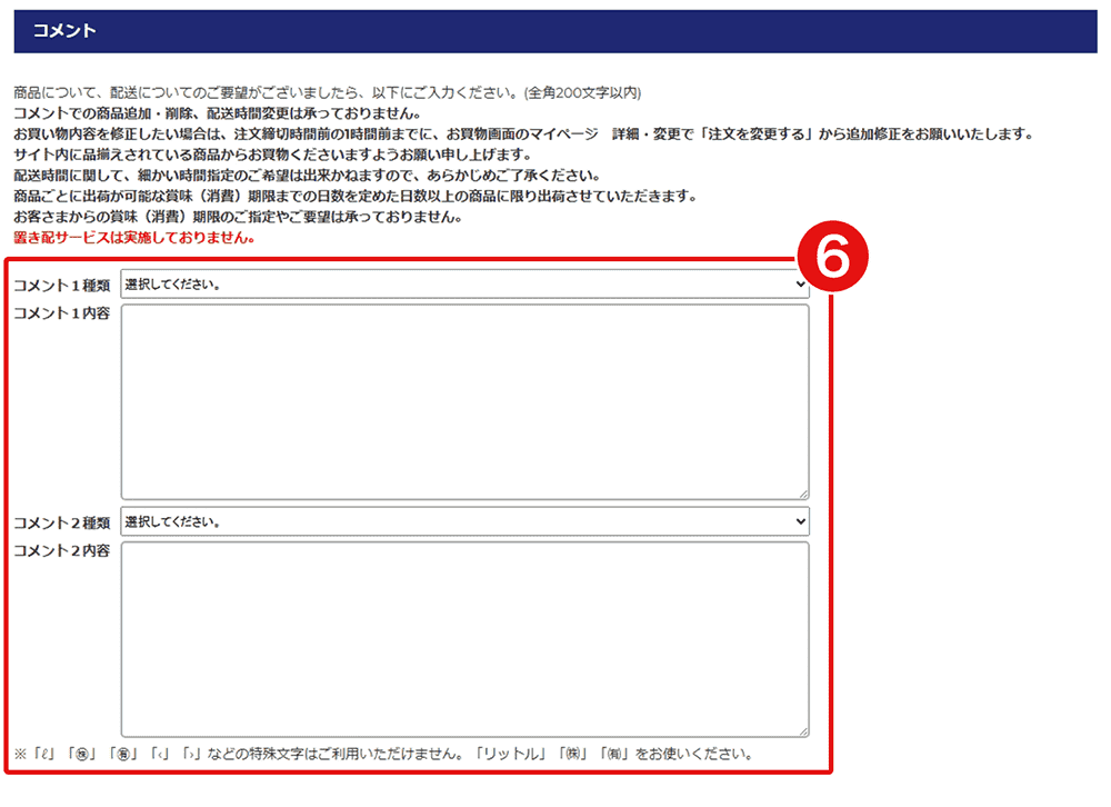 - ※ご注文が集中した場合、ご希望の時間帯を選べないことがございます。ご了承くださいませ。