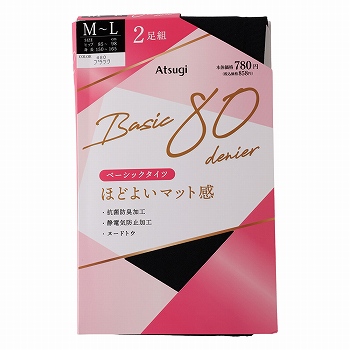 Atsugi レディス ベーシックタイツ2足組 80デニール クロ M―L