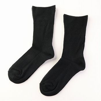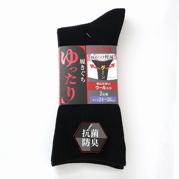 メンズ ゆったり毛混リブクルー丈2足組 クロ 24-26cm