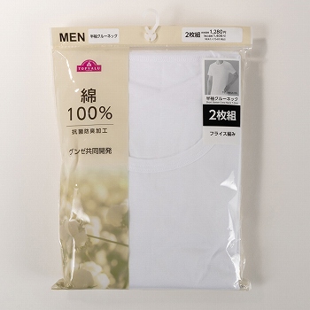 トップバリュ 紳士 綿100% 半袖クルーネック2枚組 シ...
