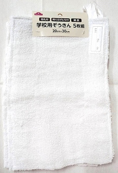 トップバリュ 学校用ぞうきん5枚組ヒモ付 名札付 吊りさげ...