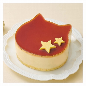 縦約9.5cm×横約10.5cm×高さ約4.8cm。プリン風味のバニラムースにカラメルソースをトッピングしたかわいらしいねこの形をしたケーキです。■特定原材料/卵・小麦・乳成分 ※えらべる5%オフの日クーポン対象外です