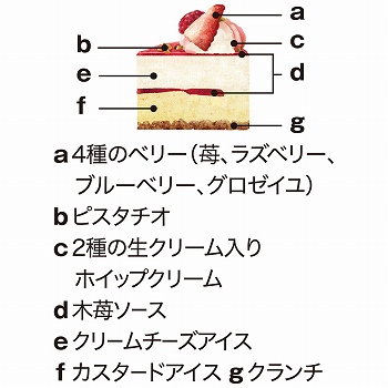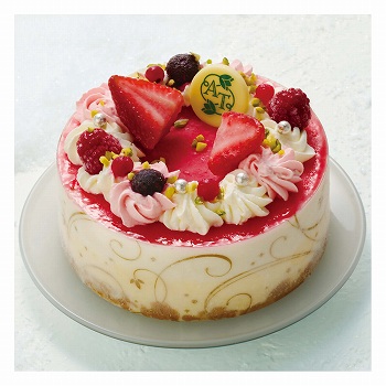 直径約12㎝×高さ約7.5㎝。木苺のソースに4種のベリーとクリームをトッピングした華やかなアイスケーキ。カスタードアイスとクリームチーズアイスの二層仕立てです。■特定原材料/卵・小麦・乳成分 ※えらべる5%オフの日クーポン対象外です