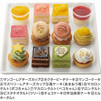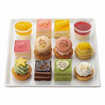 12個入り。トレーサイズ:縦約18cm×横約24cm×高さ約5cm。12種類のプチサイズのケーキを楽しめるクリスマスパーティーに最適なアソートケーキです。■特定原材料/卵・小麦・乳成分 ※えらべる5%オフの日クーポン対象外です