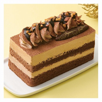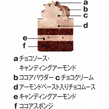 縦約7cm×横約13.8cm×高さ約6cm。アーモンドペースト入りチョコムースをココアスポンジでサンドした、アーモンド風味のショコラケーキです。■特定原材料/卵・小麦・乳成分 ※えらべる5%オフの日クーポン対象外です