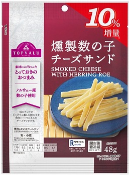 燻製した数の子を魚肉シートではさんだチーズサンドです。