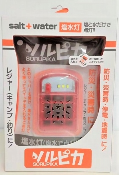 水に少し塩を加えるだけで発電する、軽量の小型LEDランタンです。