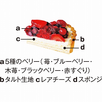 直径約15cm×高さ約3cm。タルト生地やレアチーズケーキの層には北海道産の原料を贅沢に使用し、5種のベリーをたっぷりトッピング。■特定原材料/卵・小麦・乳成分 ※えらべる5%オフの日クーポン対象外です