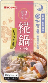 「加賀屋」の総料理長監修の鍋つゆです。米麹甘酒の甘みとしょうがの爽やかな風味が特徴で、うま味とやさしい味わいを楽しめます。