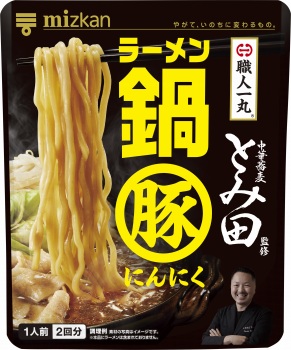 「中華蕎麦とみ田」とミツカンが共同開発した豚ラーメン鍋つゆです。醤油ベースのスープにニンニクを効かせたコク深い味わいが楽しめます。