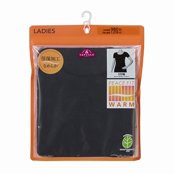 トップバリュ 婦人 ピースフィット  WARM 3分袖 クロ