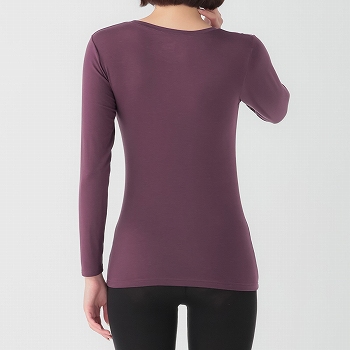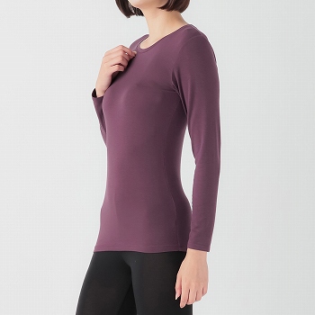 トップバリュ 婦人 ピースフィット WARM なめらか長袖Tシャツ コイムラサキ S