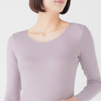 トップバリュ 婦人 ピースフィット WARM コットン 8分袖 ウスムラサキ S