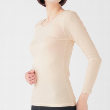 トップバリュ 婦人 ピースフィット WARM コットン 8分袖 ウスベ-ジユ L
