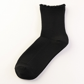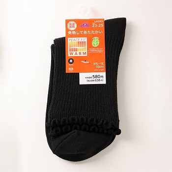 トップバリュ レディス ピースフィットWARM リブメロウクルーソックス クロ 23ー25cm