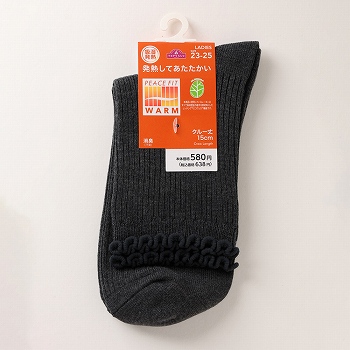 トップバリュ レディス ピースフィットWARM リブメロウクルーソックス CGY 23ー25cm