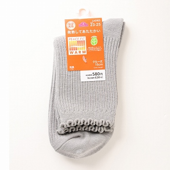 トップバリュ レディス ピースフィットWARM リブメロウクルーソックス グレ- 23ー25cm