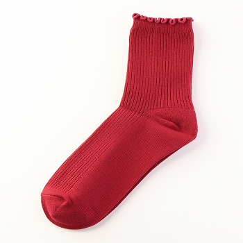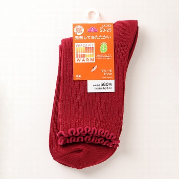 トップバリュ レディス ピースフィットWARM リブメロウクルーソックス アカ 23ー25cm