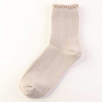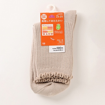トップバリュ レディス ピースフィットWARM リブメロウクルーソックス ベ-ジユ 23ー25cm
