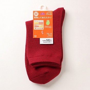 トップバリュ レディス ピースフィットWARM 平無地クルーソックス アカ 23ー25cm
