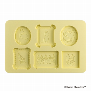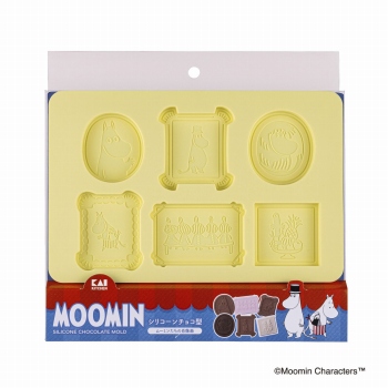 ムーミンと貝印がコラボした製菓用品です。額縁に入ったムーミン、ムーミンパパ、ご先祖様、ムーミンママ、リトルミイ、ニョロニョロの6種類のチョコレートが作れます。