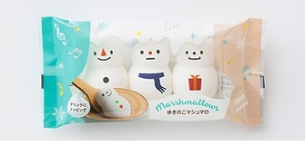 雪だるまの形をしたプレーンマシュマロと顔が書けるチョコペン付です。