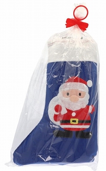 キャラメルコーンやポップコーン等が入った青いフェルトブーツです。