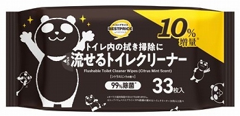 トップバリュ ベストプライス ブラックパンダ 流せるトイレクリーナーシート 33枚