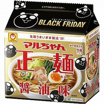 マルちゃん正麺醤油味ブラックフライデーパッケージです。