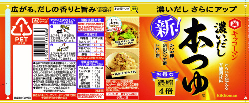 かつお節、宗田かつお節、いわし節の3種の節と昆布の合わせだしを使用し、かえし醤油を合わせてしっかりとした旨みがある濃縮つゆです。