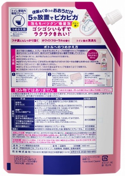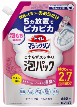 泡パックで簡単にトイレ掃除ができ、消臭効果もあります。逆さスプレーでフチ裏もきれいにし、ホワイトフローラルの香りが楽しめます。