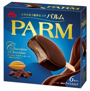 なめらかなチョコレートアイスを口どけの良いセミスイートチョコでコーティングのパルムです。