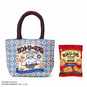 カントリーマアムミニと手提げバッグのセットです。テサゲバッグは文庫本やスマホを入れるのにちょうどいい小さめサイズです。
