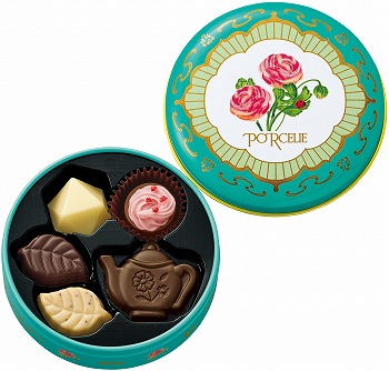 ラナンキュラス柄の缶に小粒のチョコレートなどを詰合せです。