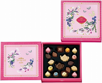 ブーケが描かれたモダンなブック型箱に様々なチョコを詰合せです。