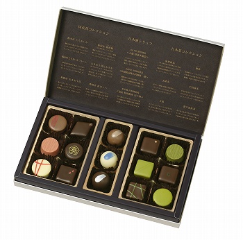 ※お酒を使用しております(1%未満)。国産苺や、日本茶、日本酒を使用したチョコレート詰合わせです。