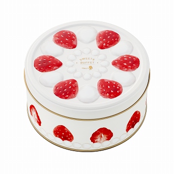 ホールケーキのかわいいデザイン缶にチョコレートの詰め合わせです。