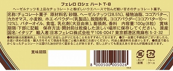 イタリアンチョコレートの代表「ロシェ」ハート型パッケージ。ヘーゼルナッツを上品なチョコレートと香ばしいウエハースで包んだ軽い甘さのチョコレート菓子です。