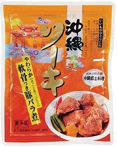 豚のアバラ肉を軟らかく煮込みました。沖縄そばの具材としてどうぞ。