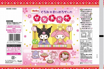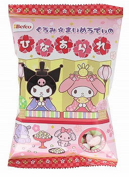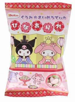 マイメロとクロミちゃんのデザインが施された可愛らしいキャラクターが楽しめるスリム型のひなあられです。