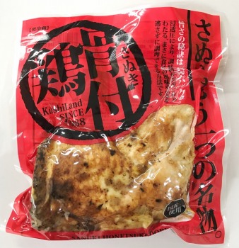 味付けした骨付鶏を、鶏の旨みがたっぷり詰まったチキンオイルで焼き、真空パックしたさぬき骨付鶏です。焼き立てを真空パックにすることで、鶏全体に味が染み込んでいます。