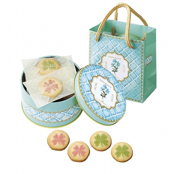苺とピスタチオと2種類のクッキーを可愛らしい缶に詰めました