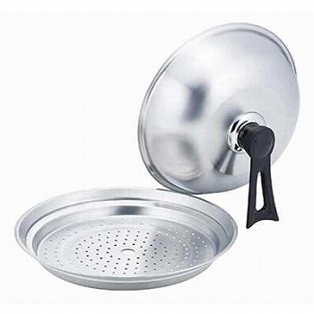 フライパンや鍋と組み合わせて、気軽に蒸し料理が楽しめます。フタが立てかけられるハンドル形状。横に伸びた取手でフタが開けやすい。