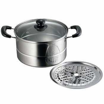 中華家 ステンレス製ガラス蓋付片手鍋18cm(せいろ付)