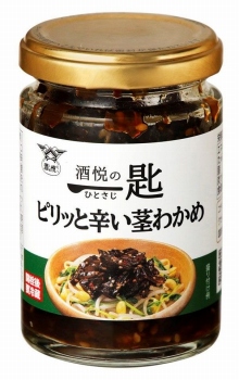 コチュジャンとラー油が絶妙に絡み合う、国産茎わかめの佃煮です。風味豊かでご飯のお供にぴったりです。