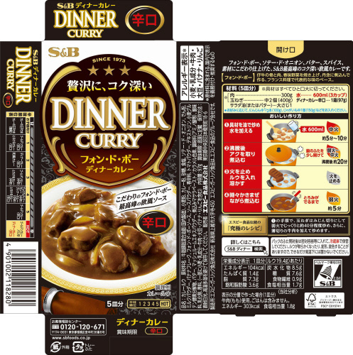 フォン・ド・ボーという美味しさの原点にこだわり続ける、上質なコクのある欧風カレーです。2種類のフォン・ド・ボーを使用した「ダブルフォン・ド・ボー」が美味しさの秘密です。