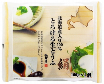 スプーンで召し上がっていただけるおとうふです。北海道産大豆100使用しました。