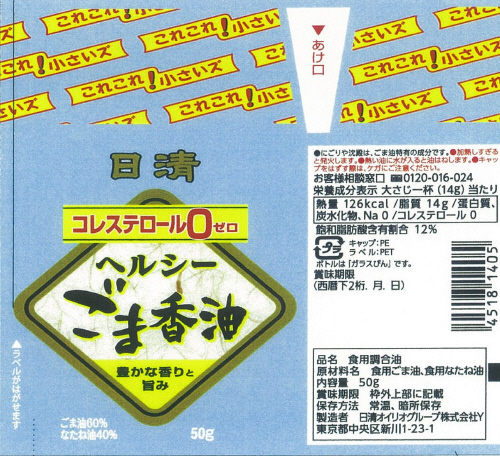 日清オイリオ ヘルシーごま香油 50g