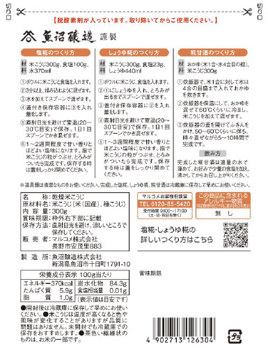乾燥していないこうじに比べ、長期保存が可能です。乾燥こうじを利用して、味噌塩糀、しょうゆ糀、甘酒が作れます。