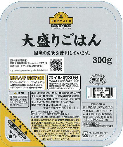 トップバリュ ベストプライス 大盛りごはん 300g
